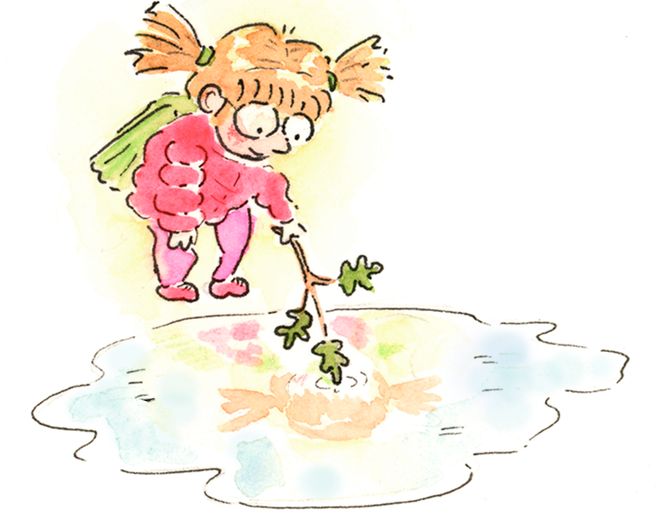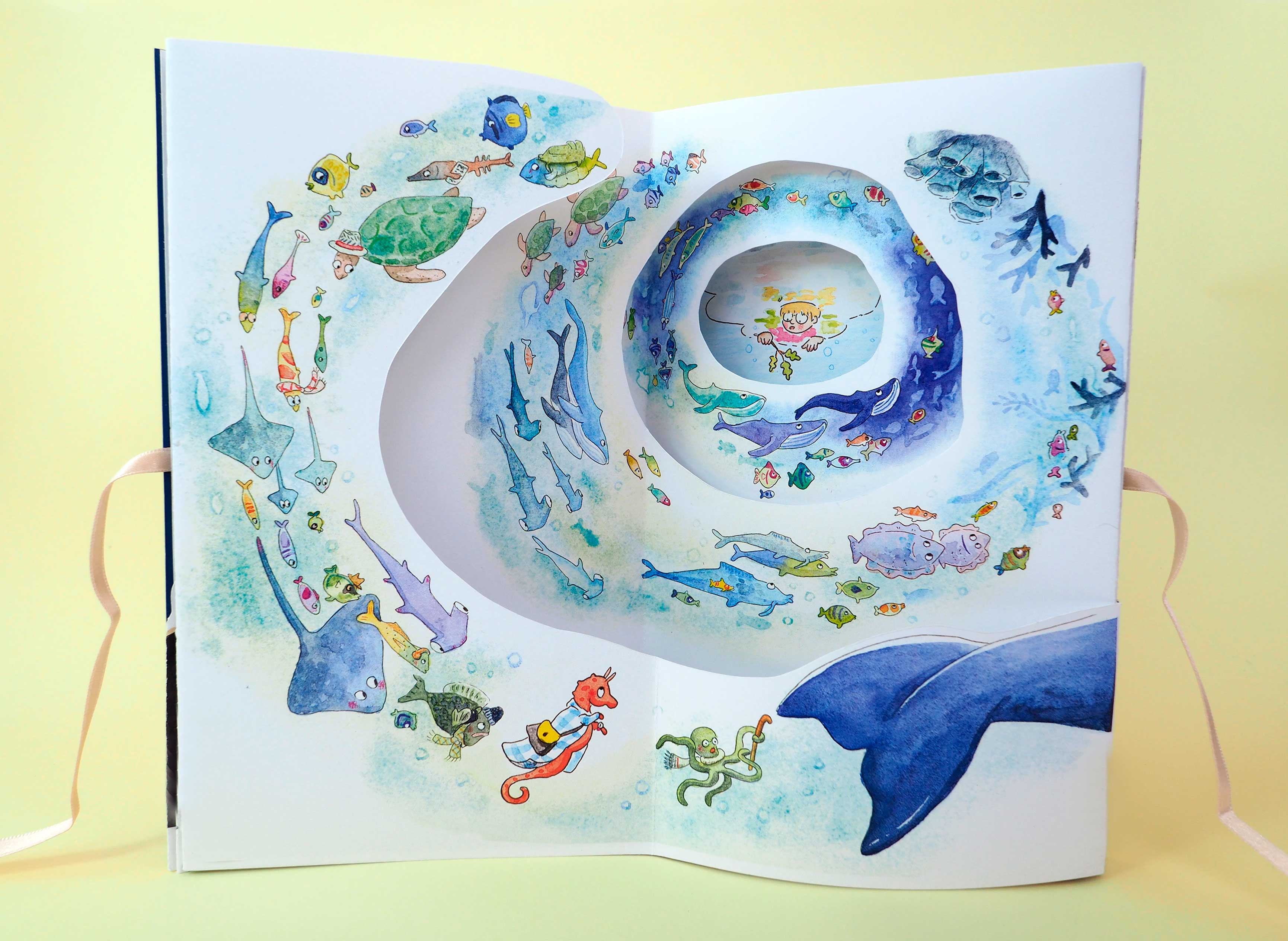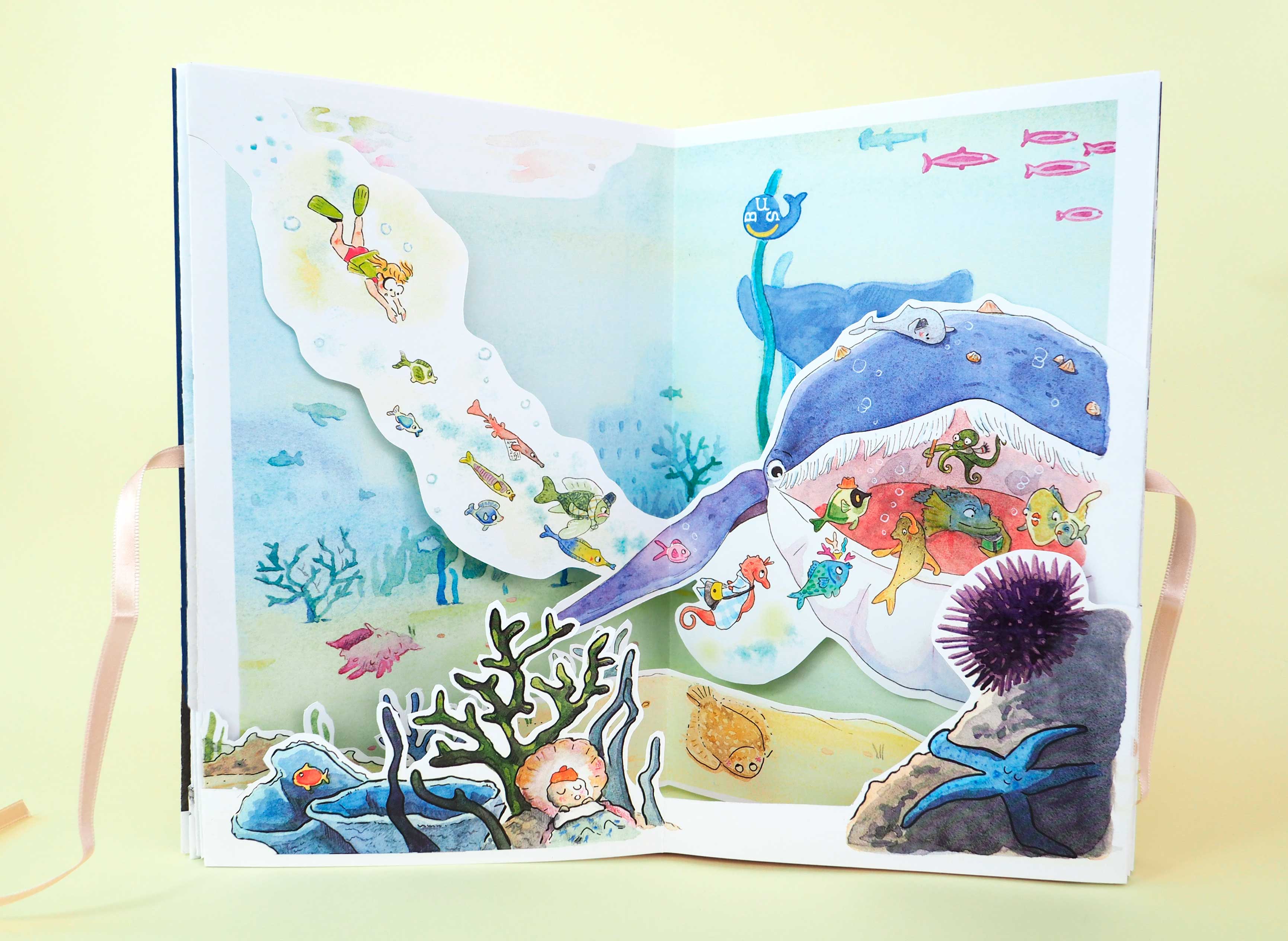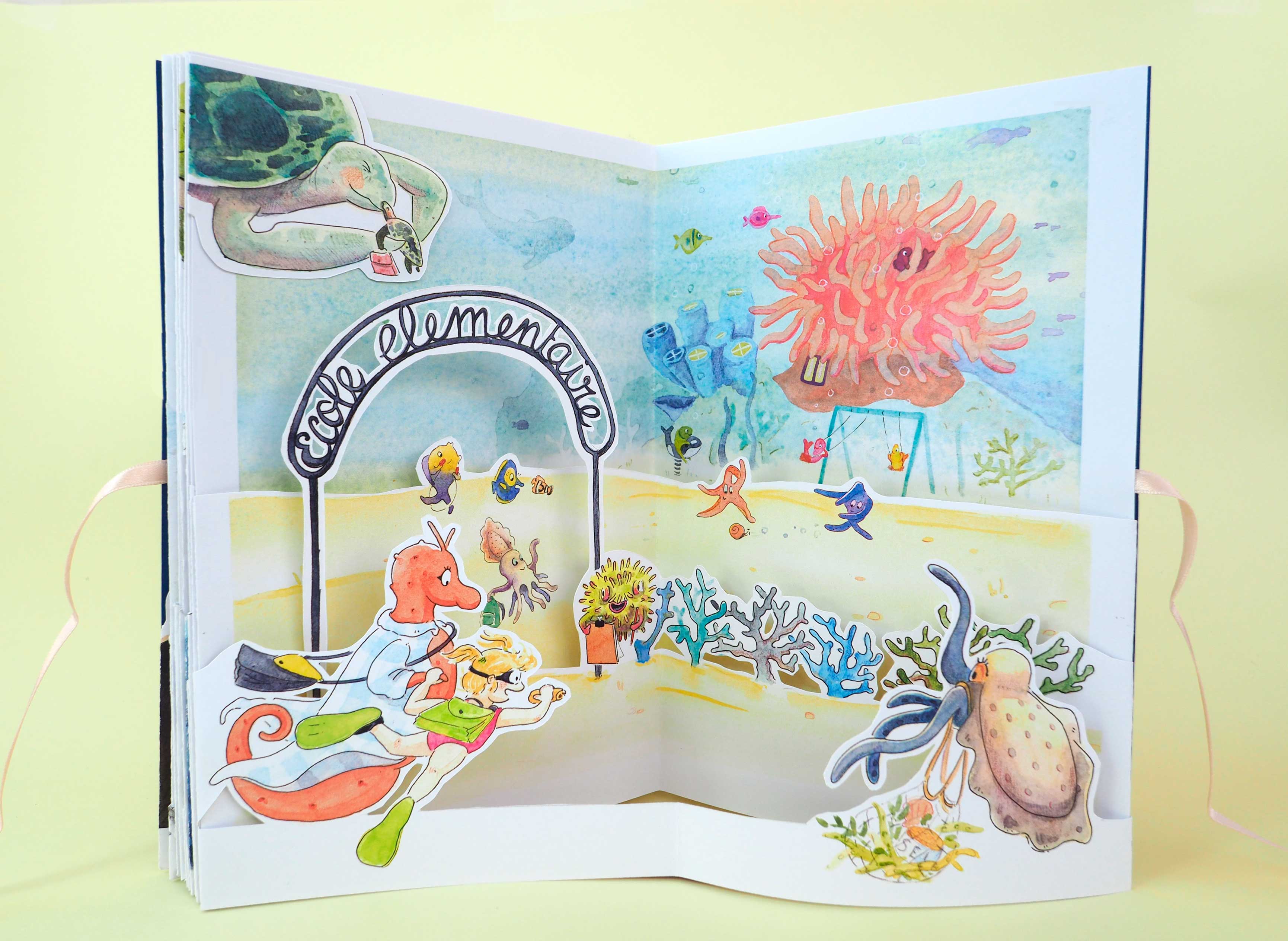 It’s time to catch the bus to school, but our heroine doesn’t seem to be in any hurry. There’s so much to see, yet no one seems to notice! She loses herself for a while in her own world, under the sea.